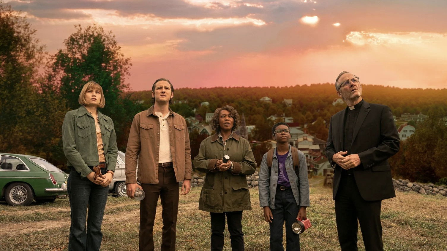 The film follows writer Ben Mears (Lewis Pullman) returning to his Maine hometown of Jerusalem’s Lot to write about his traumatic childhood, where he begins a romance with local woman Susan Norton (Makenzie Leigh). When mysterious European antique dealer Straker arrives and moves into the notorious Marsten House with a large coffin, children begin disappearing and dying from a strange anemia. As the town’s residents are systematically turned into vampires by Straker’s master Kurt Barlow, Ben teams up with schoolteacher Matt Burke, young student Mark Petrie (Jordan Preston), Dr. Cody (Alfre Woodard), and Father Callahan (John Benjamin Hickey) to fight back.